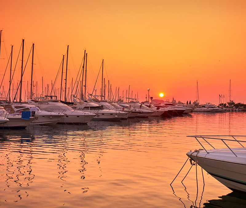 Moderner Yachthafen mit Luxusyachten und ideal für Nautiker und Wassersportler.
